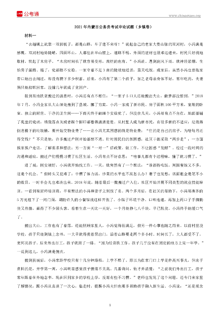 2021年内蒙古公务员考试申论试题(乡镇卷).pdf