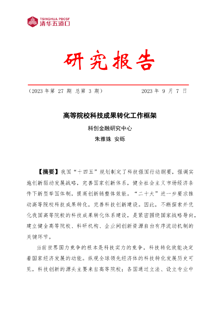 清华五道口:2023高等院校科技成果转化工作框架研究报告.pdf