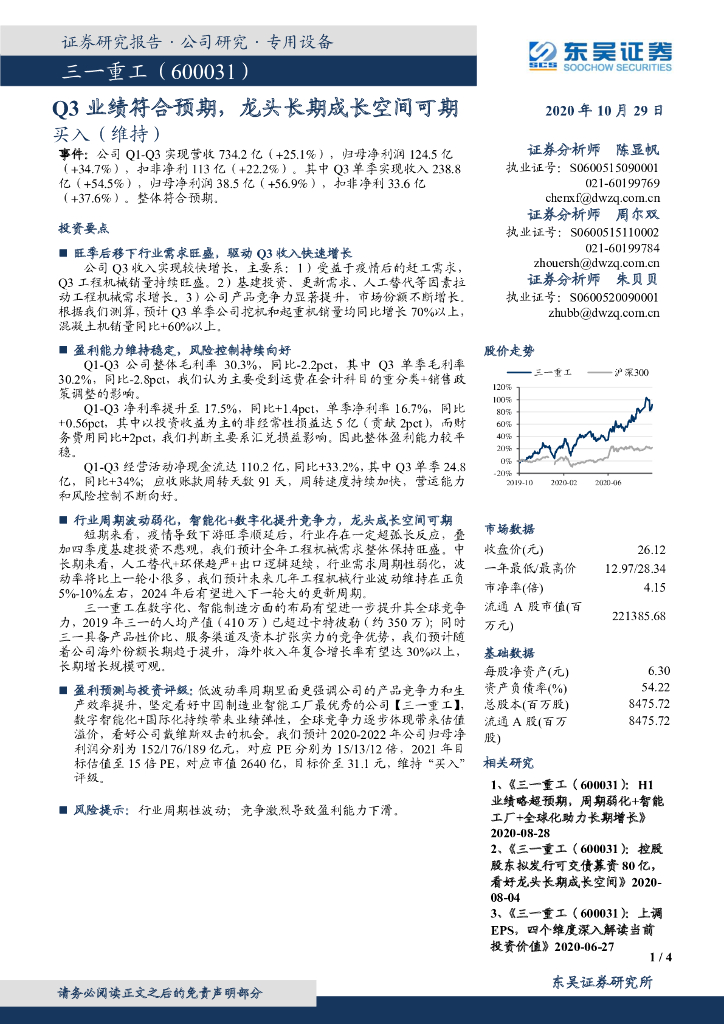 东吴证券:三一重工(600031)-Q3业绩符合预期,龙头长期成长空间可期.pdf