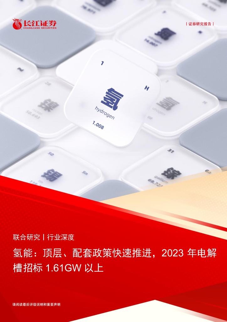 长江证券:氢能行业:顶层、配套政策快速推进,2023年电解槽招标1.61GW以上.pdf