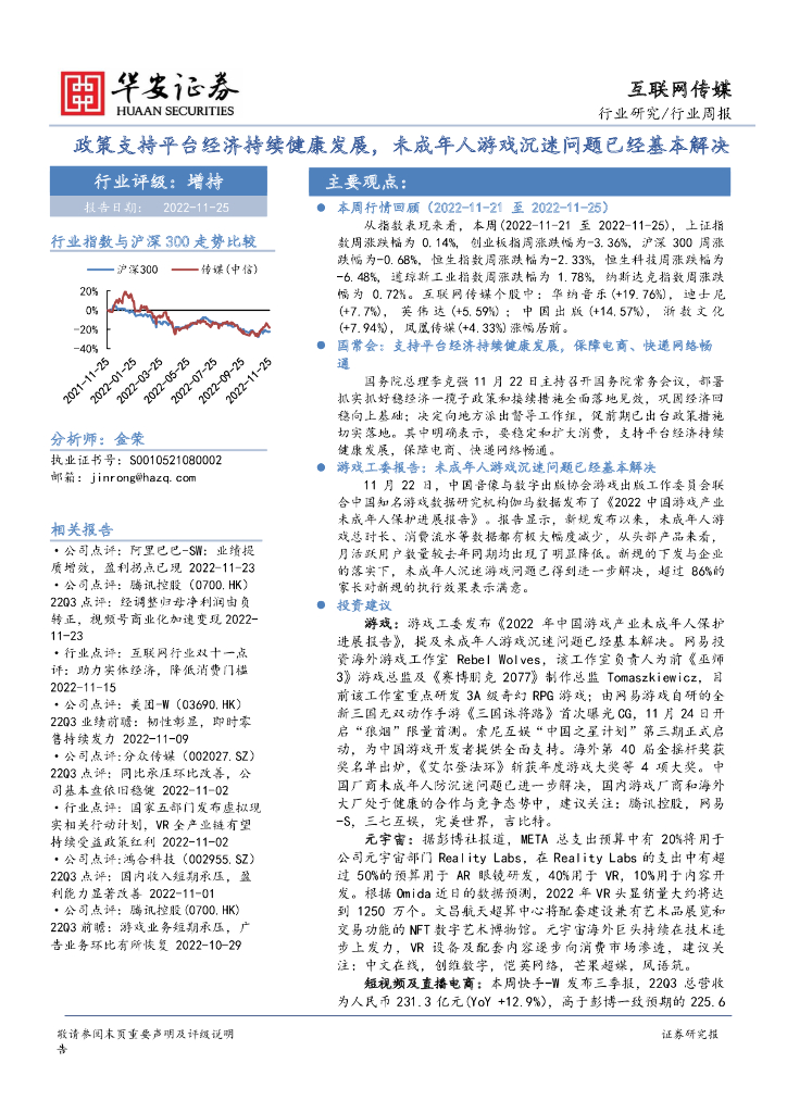 华安证券:互联网传媒行业周报:政策支持平台经济持续健康发展,未成年人游戏沉迷问题已经基本解决.pdf