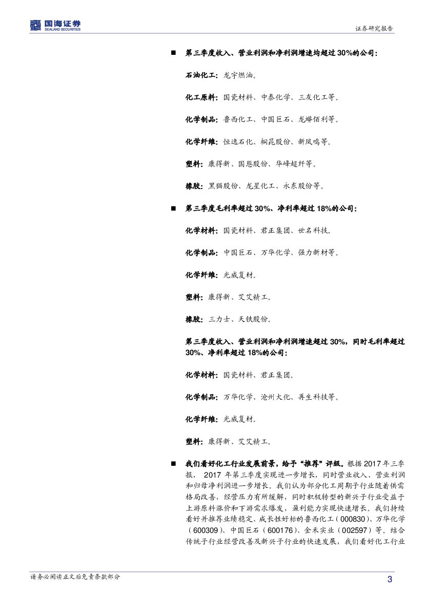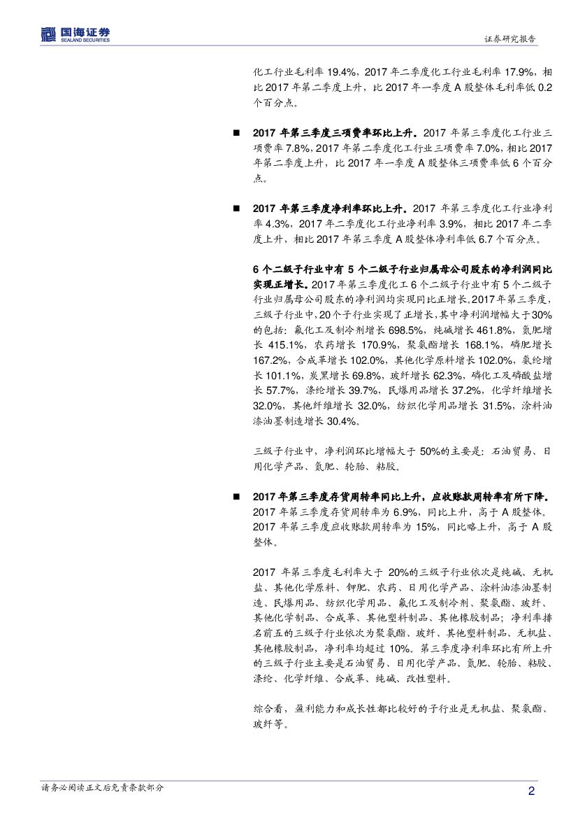 国海证券:化工行业2017年三季报总结:化工行业整体盈利水平持续提升.pdf
