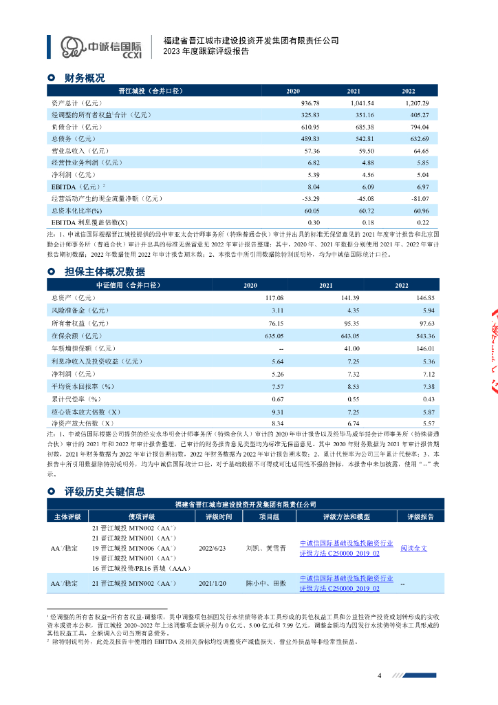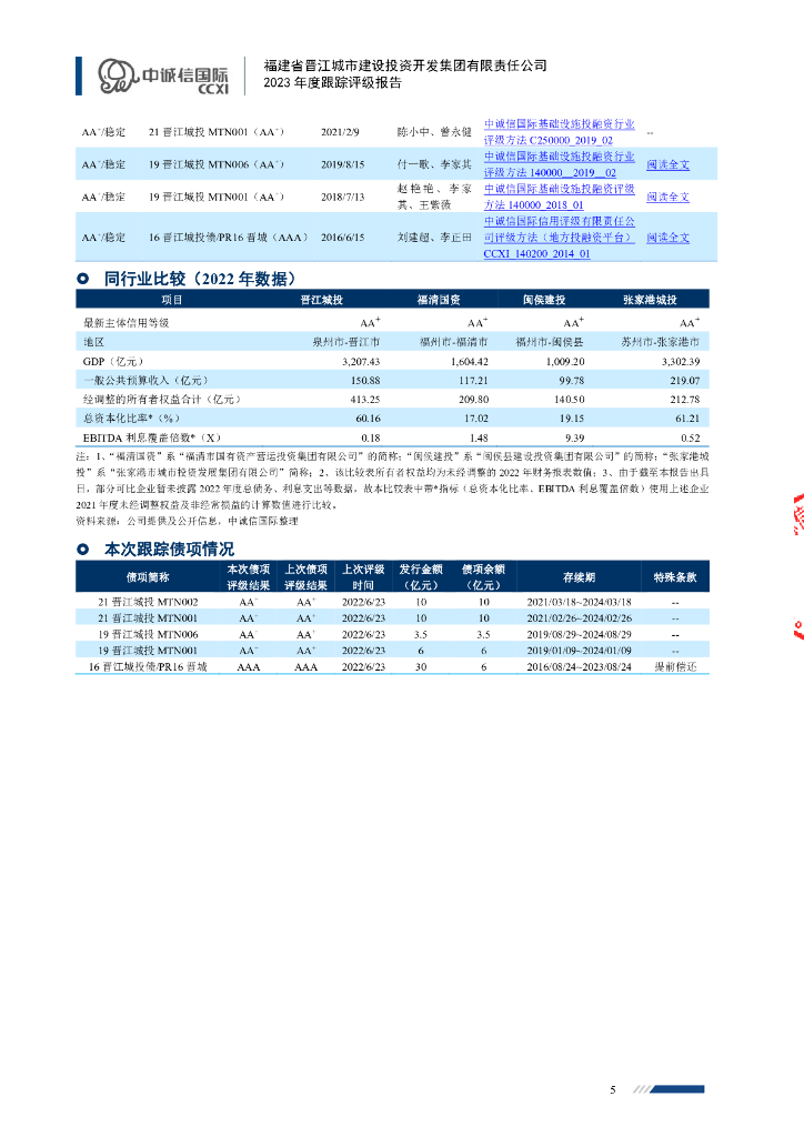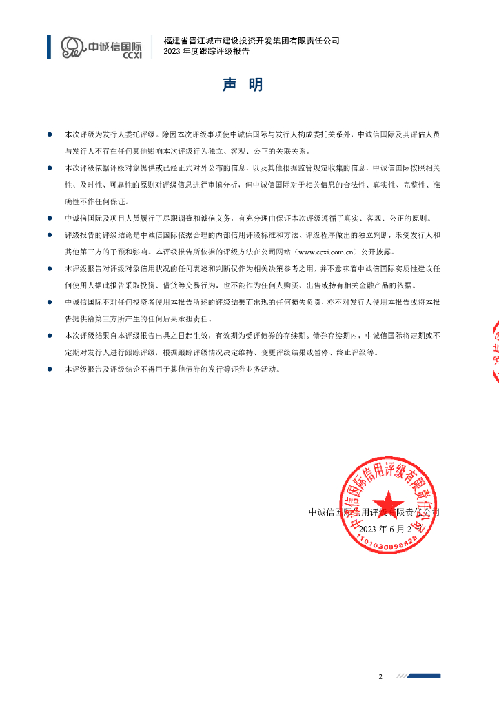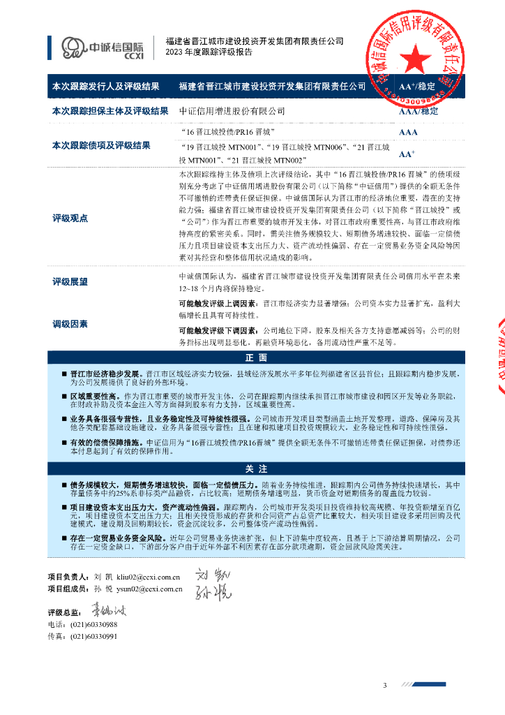 中诚信:福建省晋江城市建设投资开发集团有限责任公司主体信用评级报告及跟踪评级安排.pdf