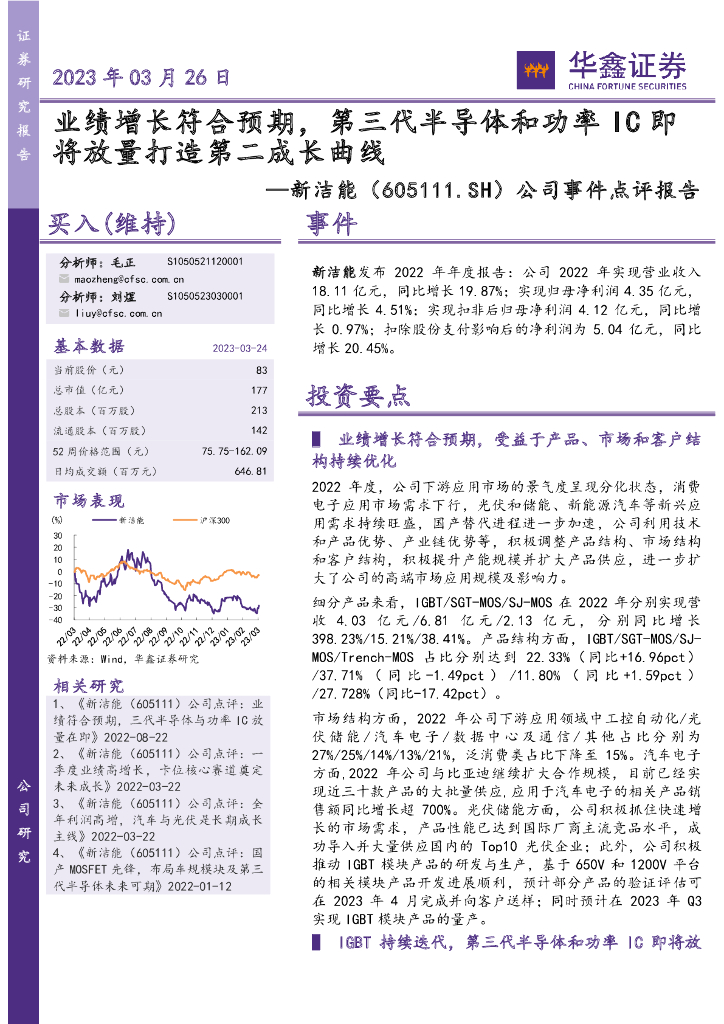 华鑫证券:新洁能(605111)-公司事件点评报告:业绩增长符合预期,第三代半导体和功率IC即将放量打造第二成长曲线.pdf