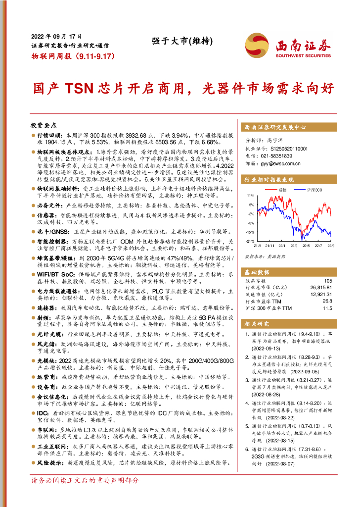 西南证券:物联网周报:国产TSN芯片开启商用,光器件市场需求向好.pdf