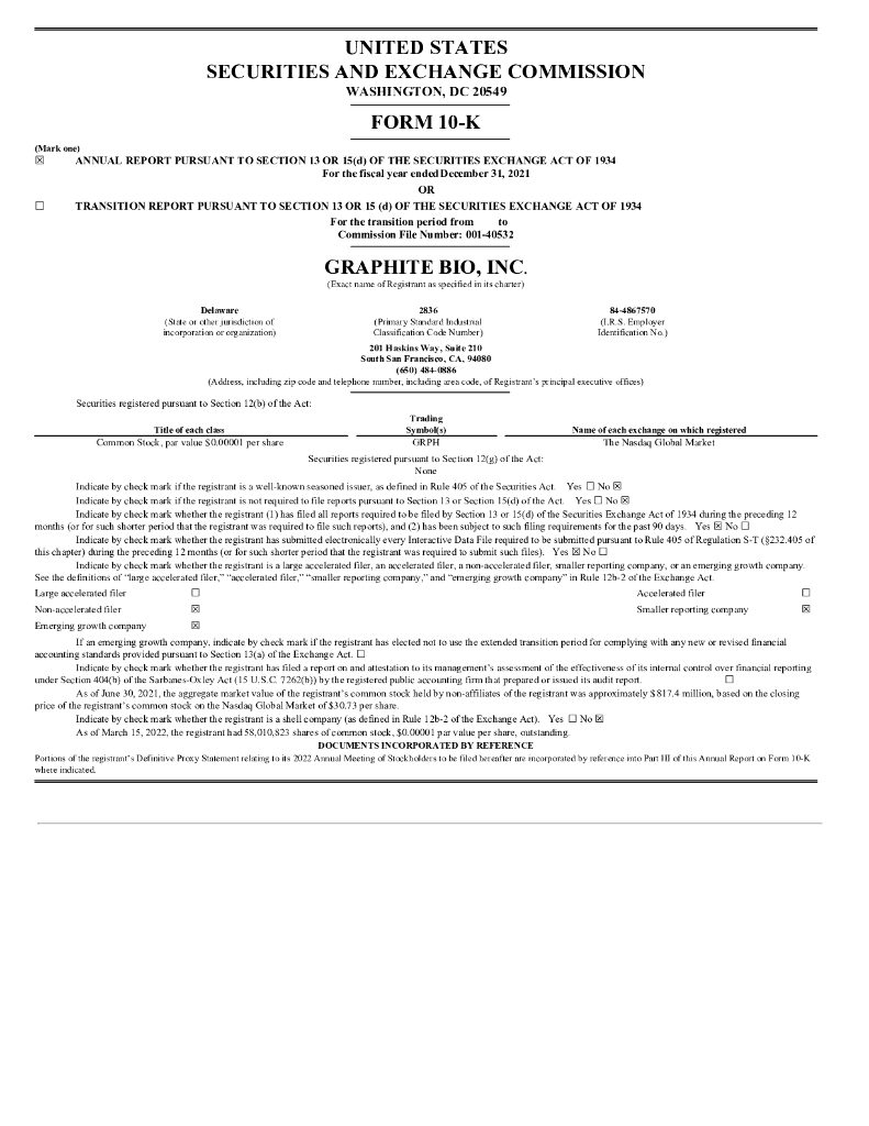 Graphite Bio(GRPH)2021财年年度报告(英文版).pdf