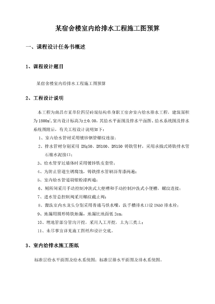 某宿舍楼给排水工程施工图预算课程设计.pdf