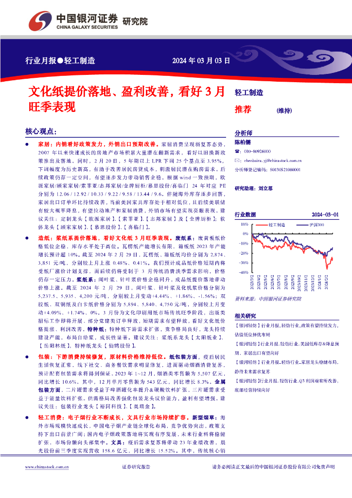 中国银河:轻工制造行业月报:文化纸提价落地、盈利改善,看好3月旺季表现.pdf