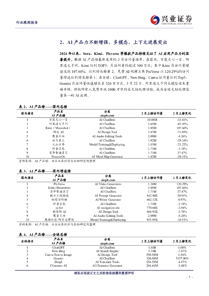 兴业证券:AI应用专题报告:Sora、Kimi等模型产品力快速跃升,AI大应用时代已来.pdf