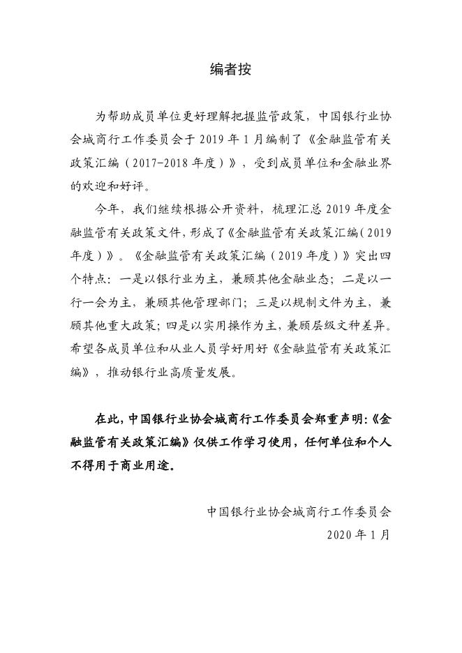 中国银行业协会城商行工作委员会:金融监管有关政策汇编(2019年度).pdf