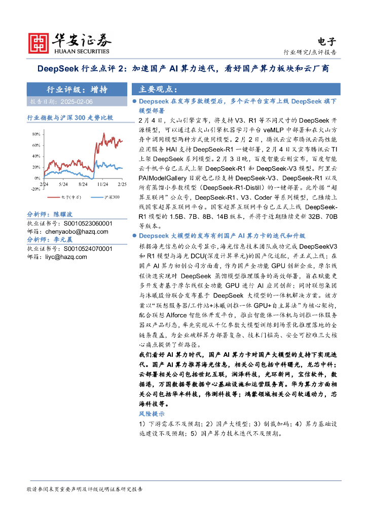 华安证券:DeepSeek行业点评2:加速国产AI算力迭代,看好国产算力板块和云厂商.pdf