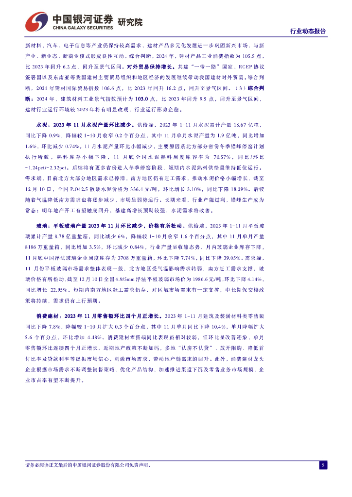 中国银河:建材行业动态报告:行业即将回升至景气区间.pdf