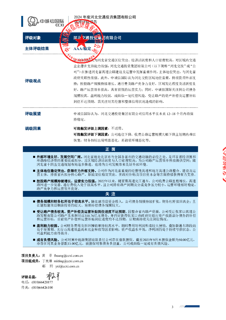 中诚信:河北交通投资集团有限公司主体信用评级报告及跟踪评级安排.pdf