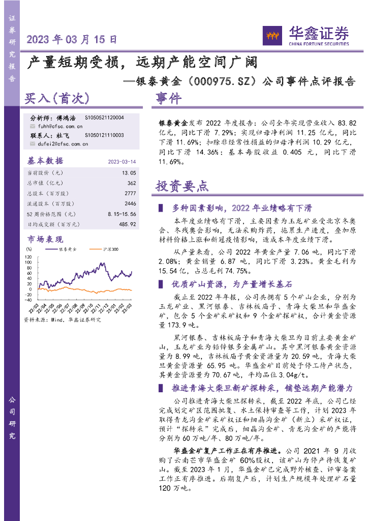华鑫证券:银泰黄金(000975)-公司事件点评报告:产量短期受损,远期产能空间广阔.pdf