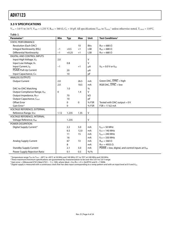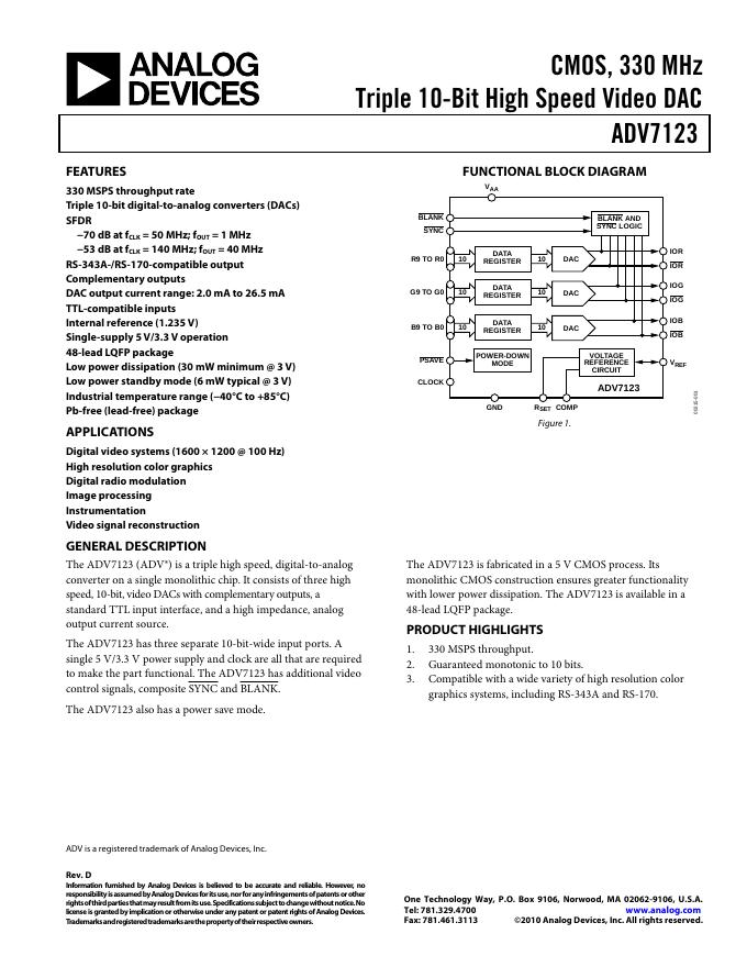 ANALOG DEVICES CMOS, 330 MHz Triple 10-Bit High Speed Video DAC ADV7123 英文产品数据手册 Rev D.pdf
