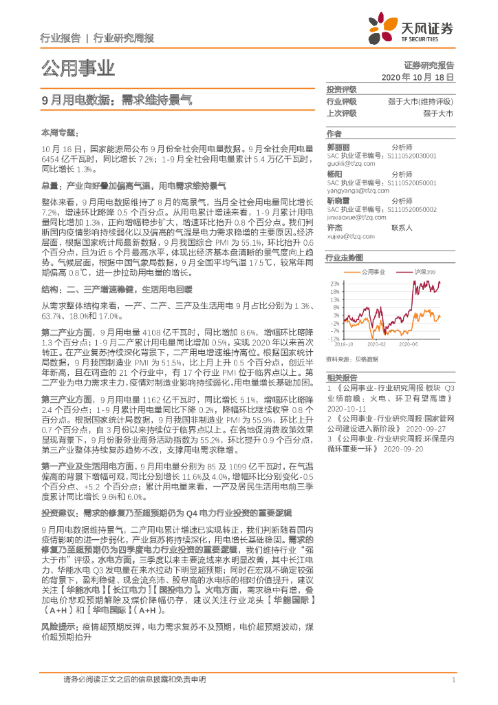 天风证券:公用事业行业研究周报:9月用电数据:需求维持景气.pdf