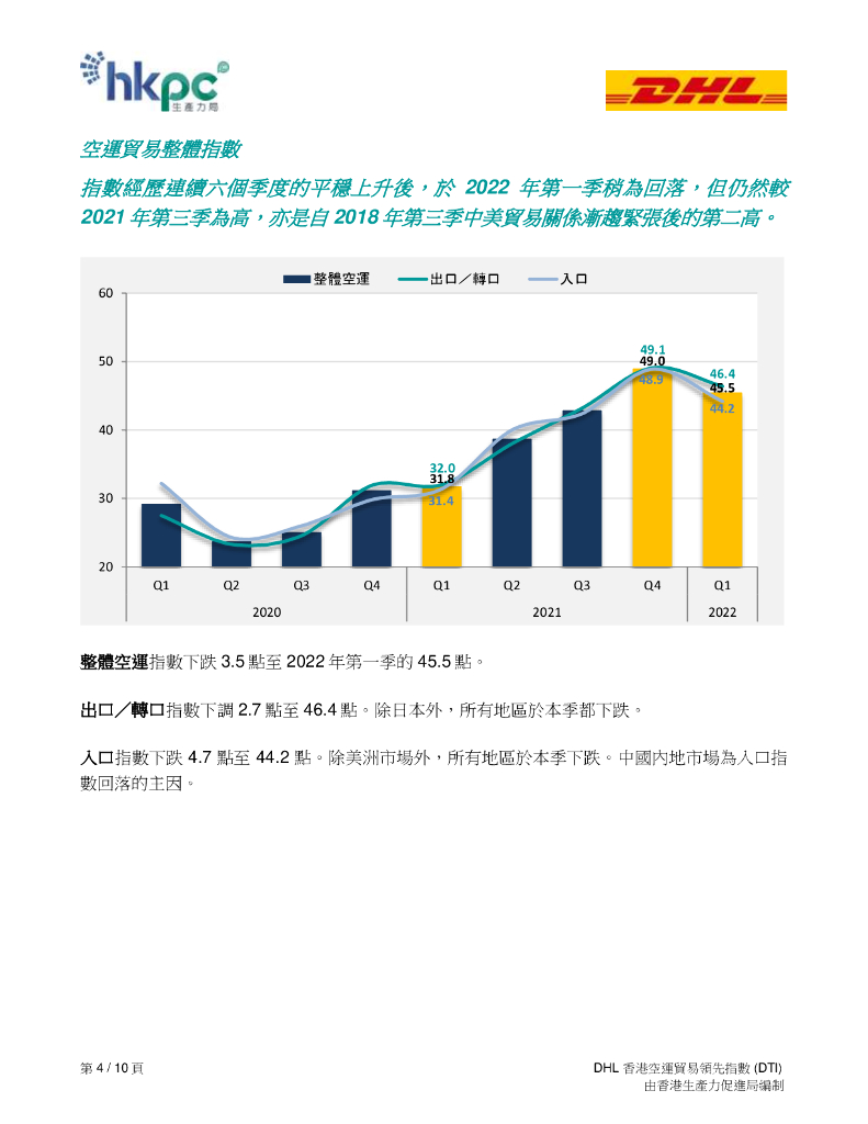 香港生产力促进局:2022年第一季度DHL香港空运贸易领先指数(DTI)报告(繁体版).pdf
