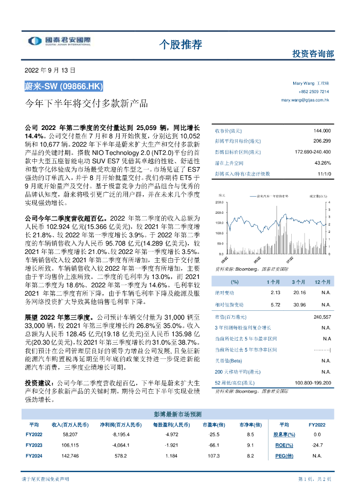 国泰君安证券(香港):蔚来-SW(09866)港股公司研究报告-今年下半年将交付多款新产品.pdf