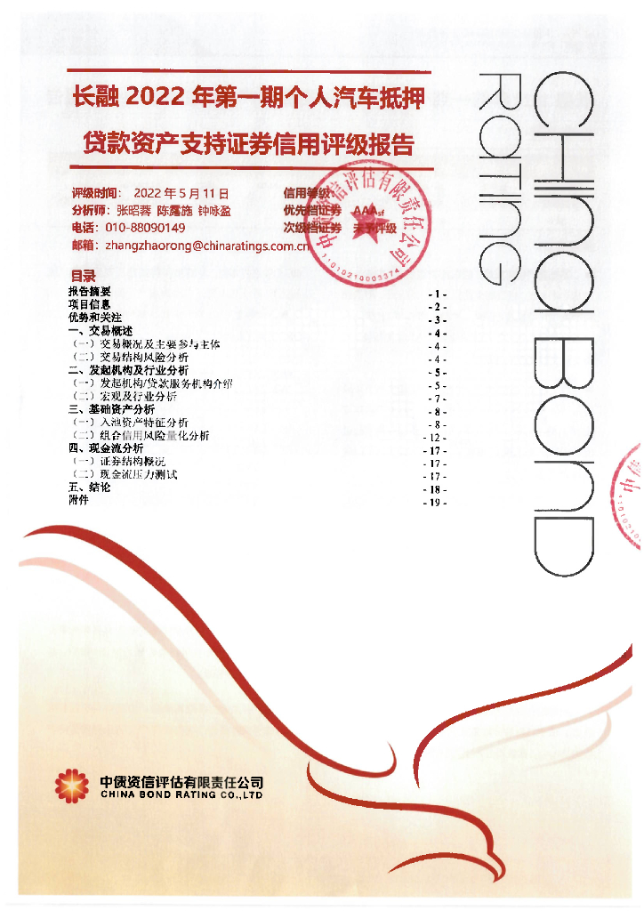 中债资信:长融2022年第一期个人汽车抵押贷款资产支持证券信用评级报告.pdf