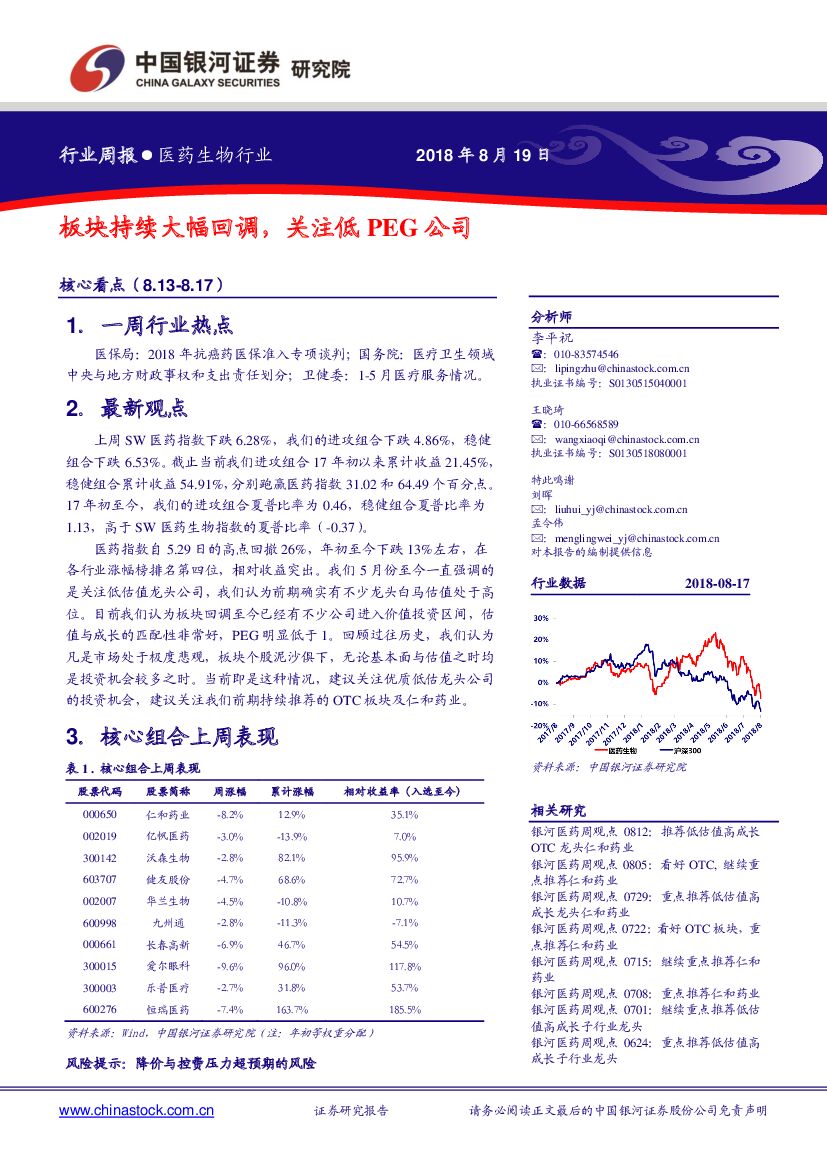 中国银河:医药生物行业周报:板块持续大幅回调,关注低PEG公司.pdf