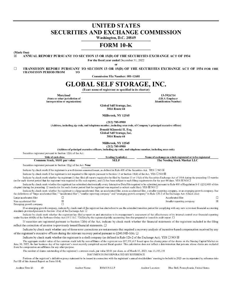 Global Self Storage, Inc.(SELF)2022财年年度报告(英文版).pdf