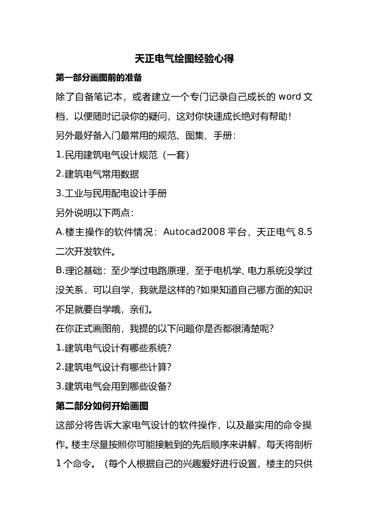 天正电气绘图经验心得.doc
