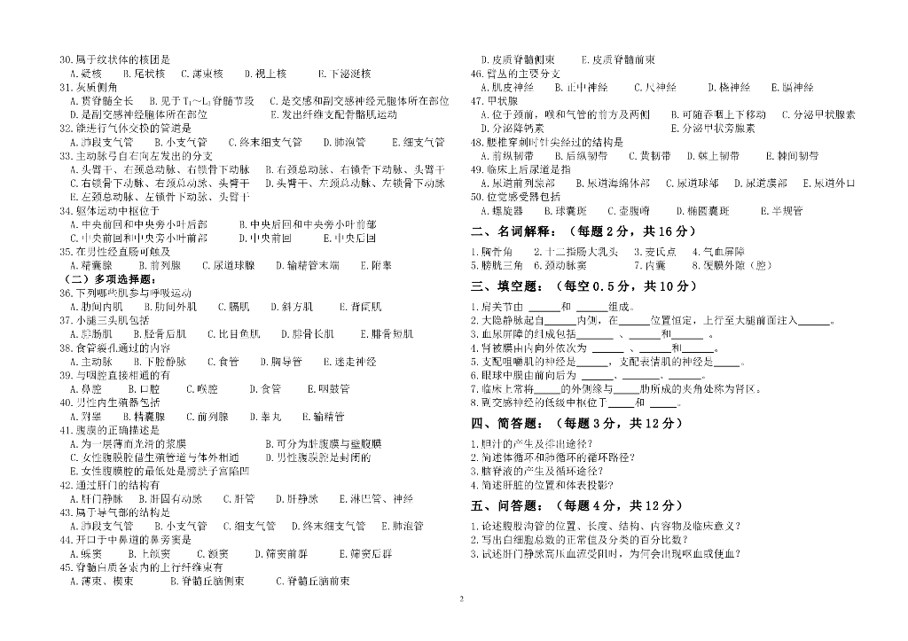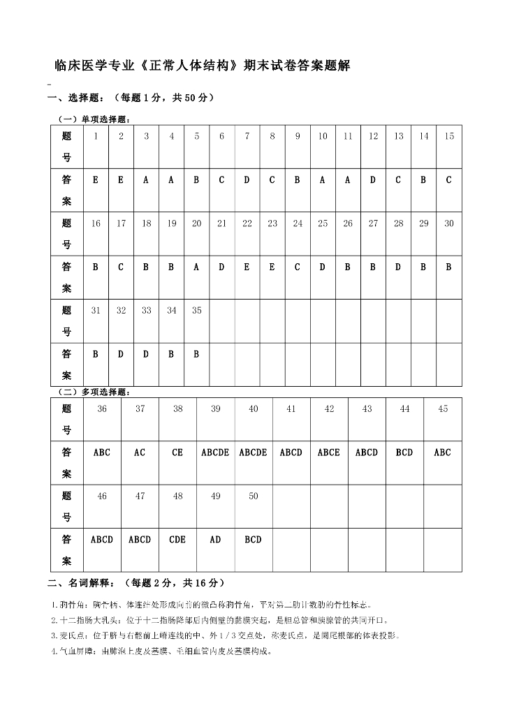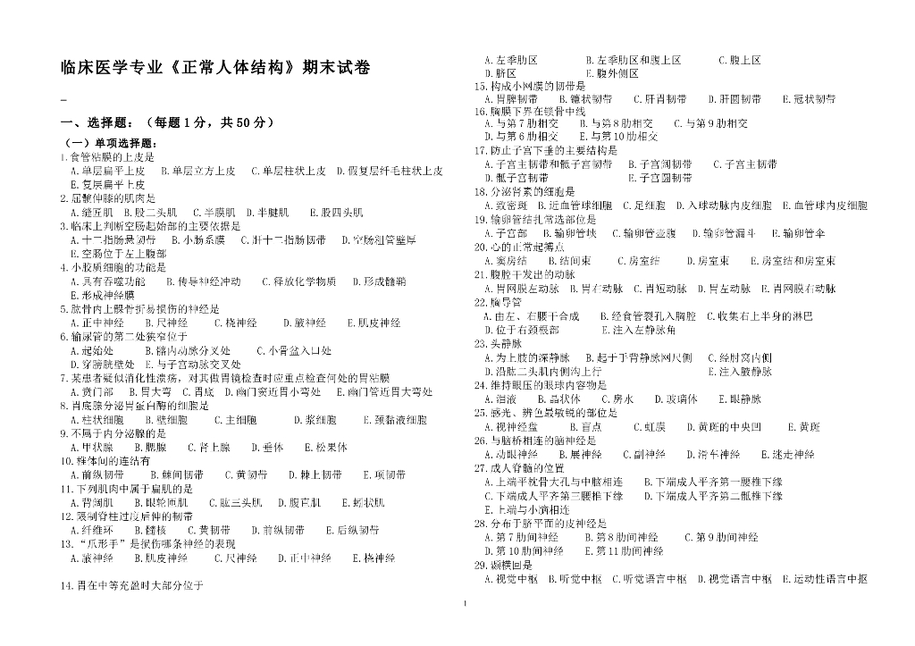 《正常人体结构》测试试卷及答案合集.pdf