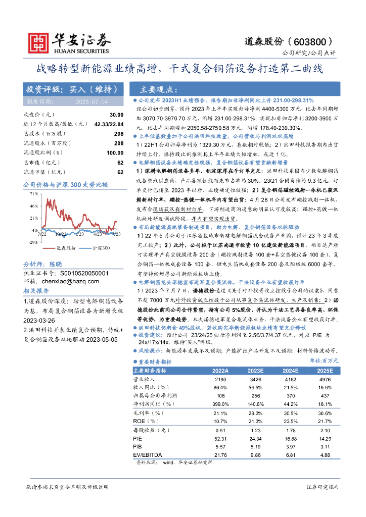 华安证券:道森股份(603800)-战略转型新能源业绩高增,干式复合铜箔设备打造第二曲线.pdf