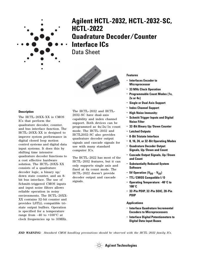 Agilent HCTL-2032, HCTL-2032-SC, HCTL-2022 Quadrature Decoder/Counter Interface ICs 数据手册.pdf