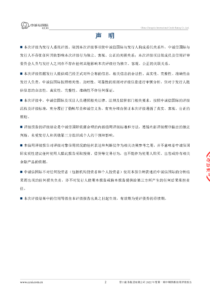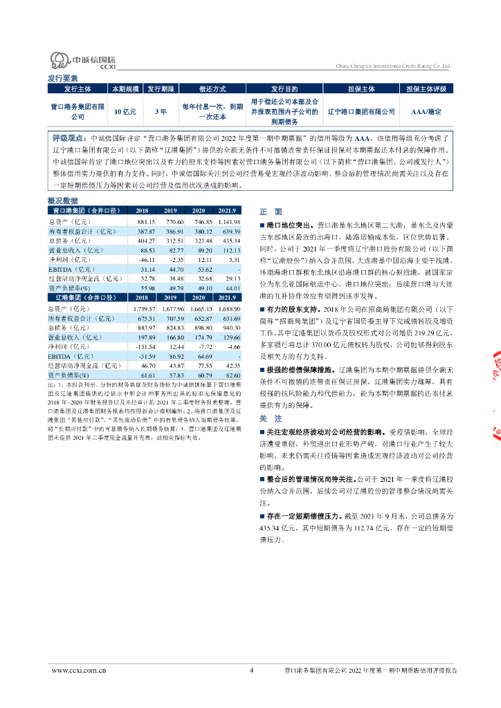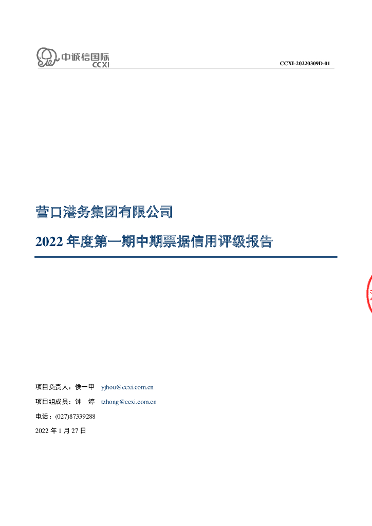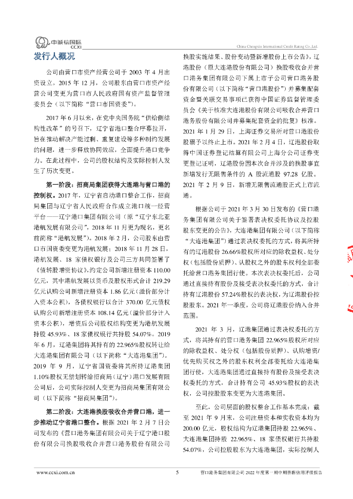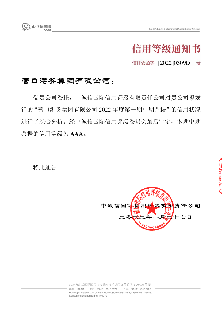 中诚信:营口港务集团有限公司2022年度第一期中期票据信用评级报告.pdf