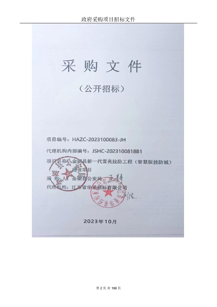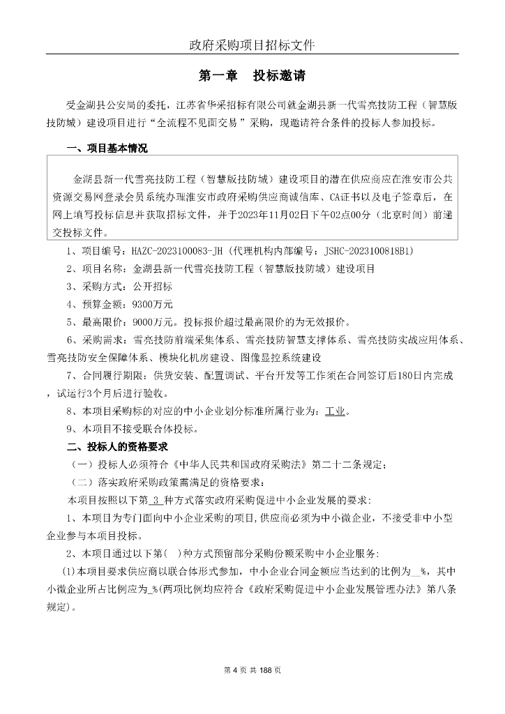 金湖县新一代雪亮技防工程(智慧版技防城)建设项目招标文件.pdf