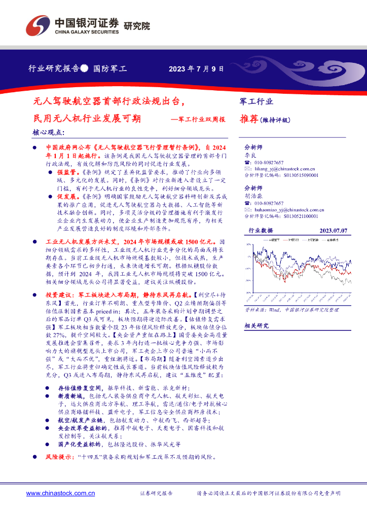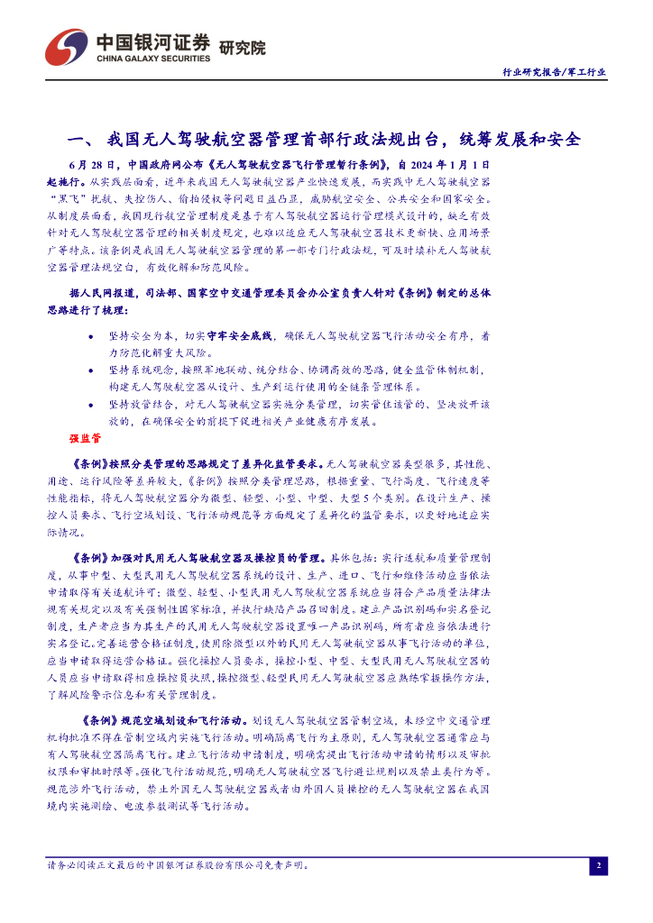 中国银河:军工行业双周报:无人驾驶航空器首部行政法规出台,民用无人机行业发展可期.pdf