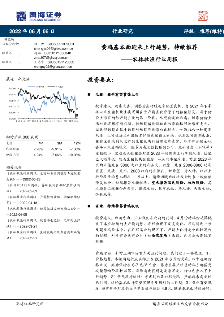 国海证券:农林牧渔行业周报:黄鸡基本面迎来上行趋势,持续推荐.pdf