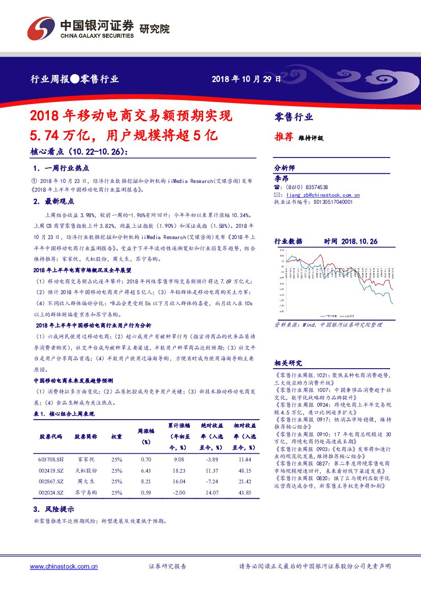 中国银河:零售行业周报:2018年移动电商交易额预期实现5.74万亿,用户规模将超5亿.pdf