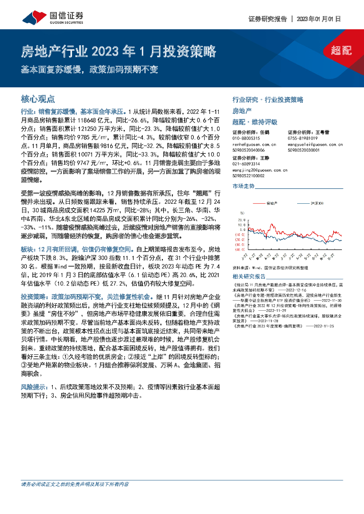 国信证券:房地产行业2023年1月投资策略:基本面复苏缓慢,政策加码预期不变.pdf