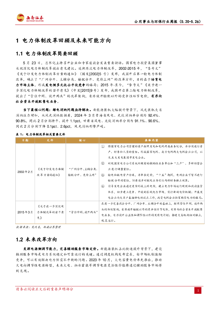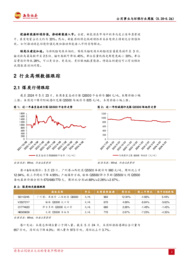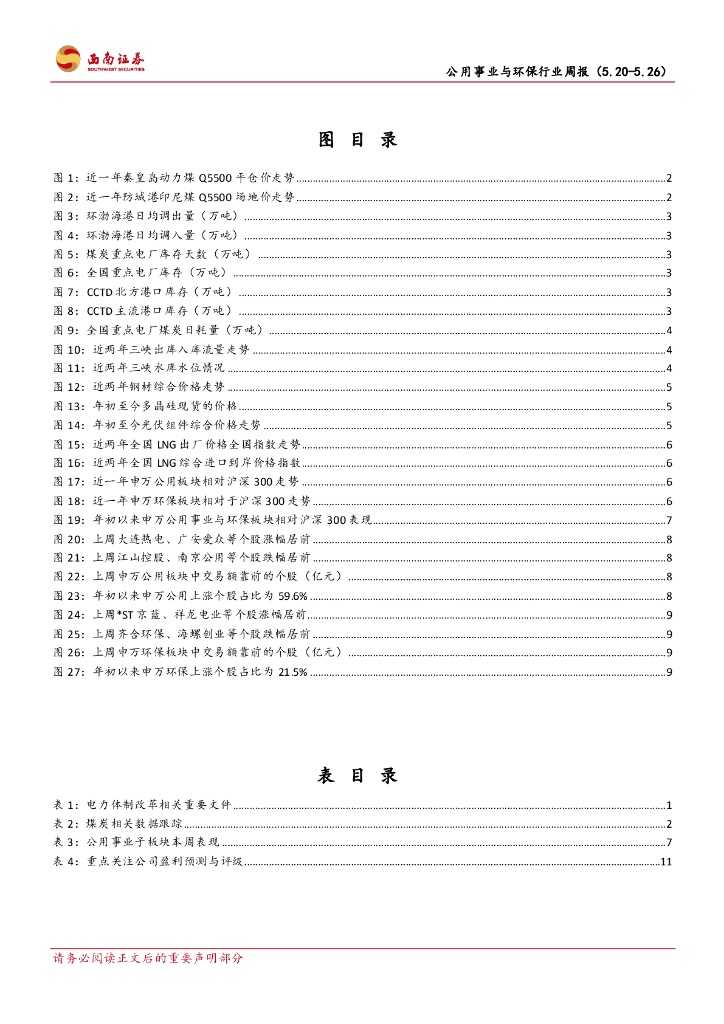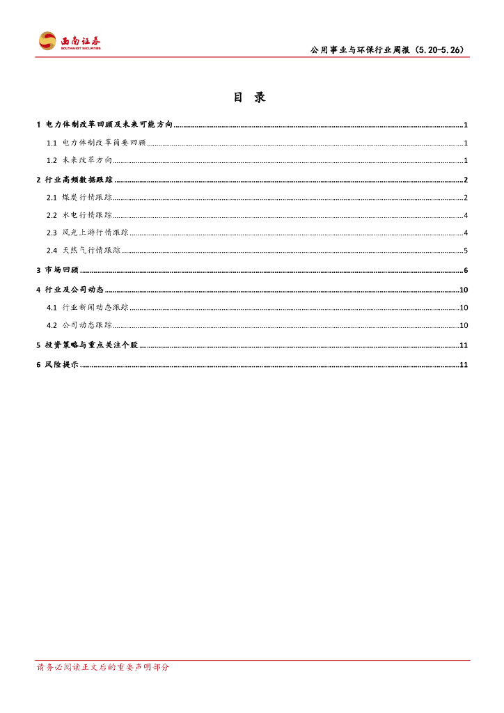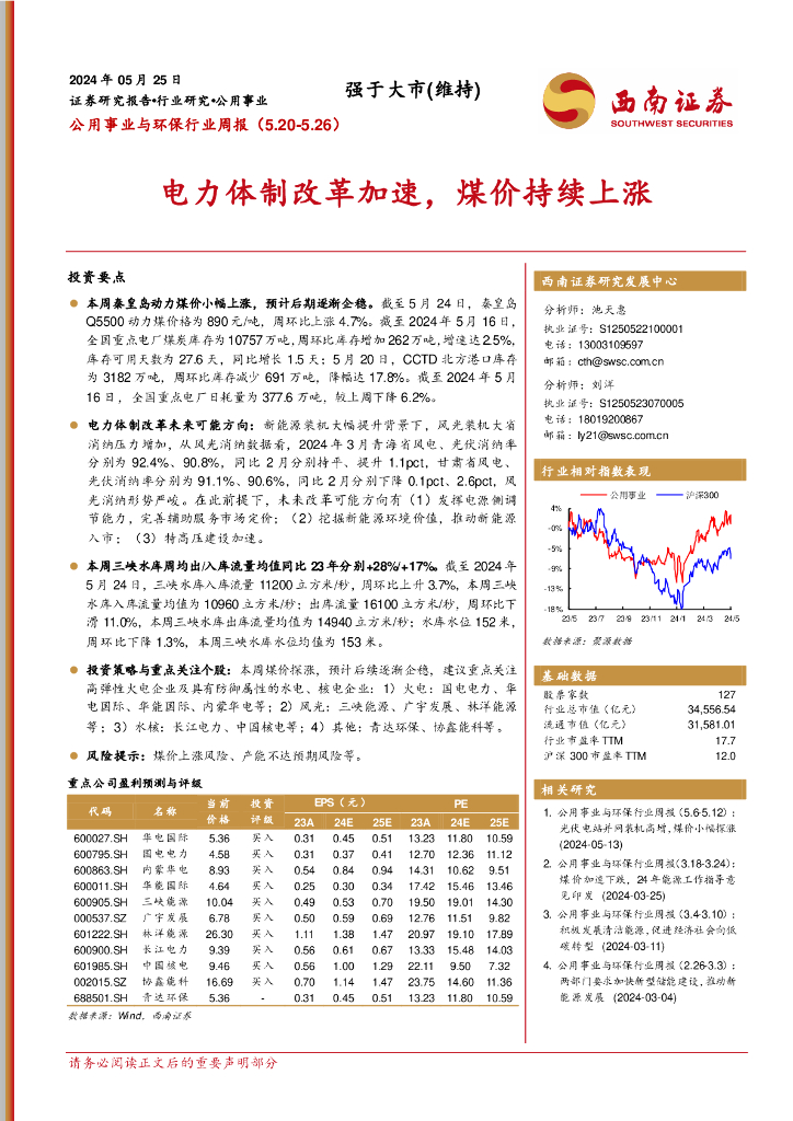 西南证券:公用事业与环保行业周报:电力体制改革加速,煤价持续上涨.pdf