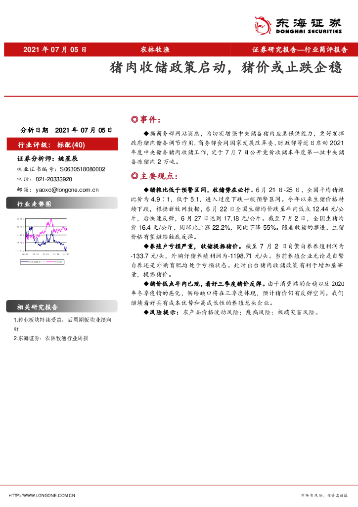 东海证券:农林牧渔行业简评报告:猪肉收储政策启动,猪价或止跌企稳.pdf