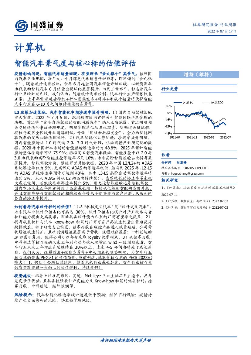 国盛证券:计算机行业周报:智能汽车景气度与核心标的估值评估.pdf