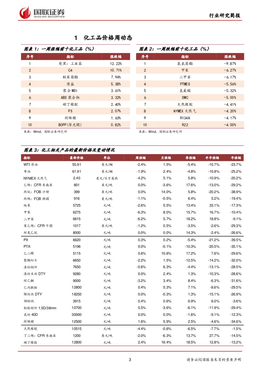 国联证券:化工行业研究简报:近油端化工品价格出现回落,聚合MDI有所反弹.pdf