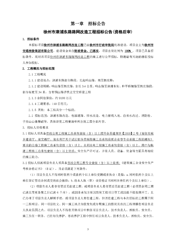 津浦东路路网改造工程施工招标文件93p.pdf