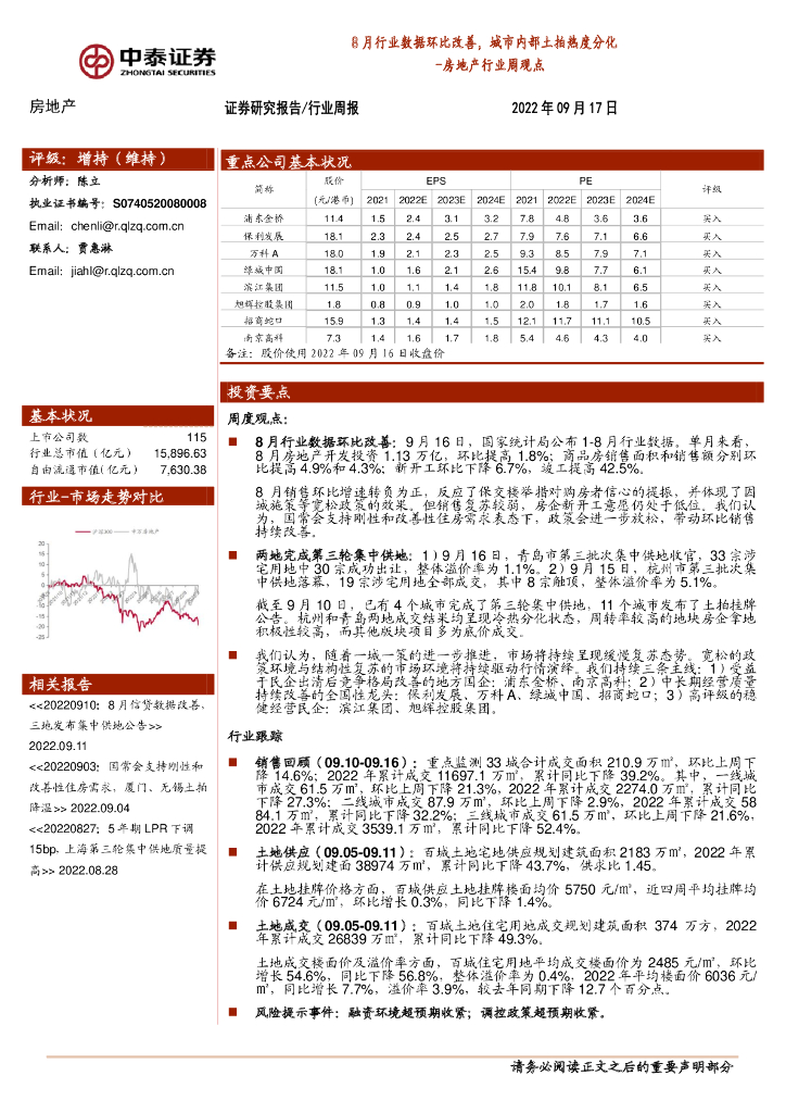 中泰证券:房地产行业周观点:8月行业数据环比改善,城市内部土拍热度分化.pdf