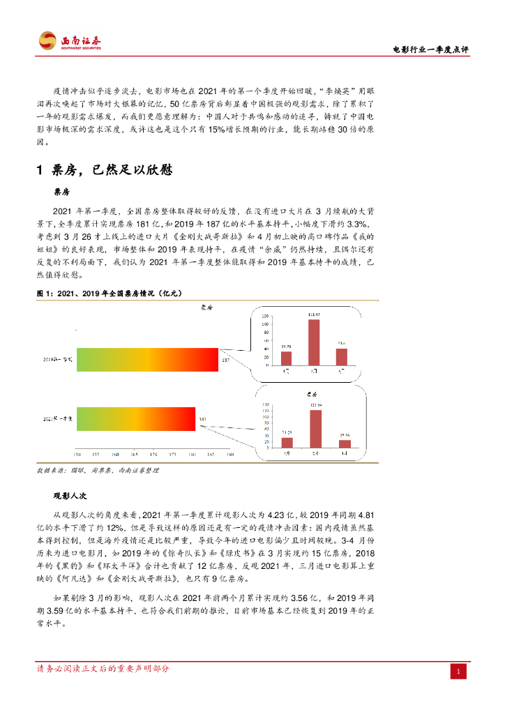 西南证券:电影行业一季度点评:电影行业整体复苏、结构变化值得关注.pdf