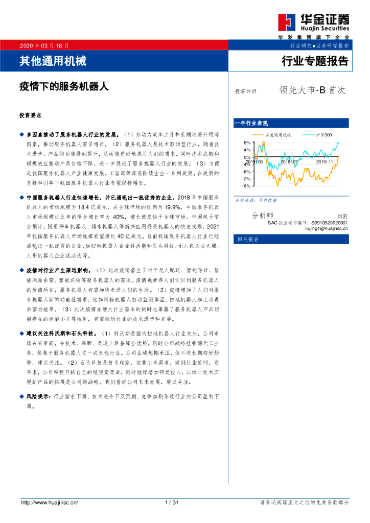 华金证券:其他通用机械行业专题报告:疫情下的服务机器人.pdf