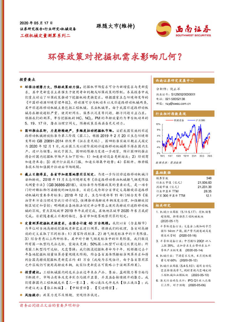 西南证券:工程机械定量测算系列二:环保政策对挖掘机需求影响几何?.pdf