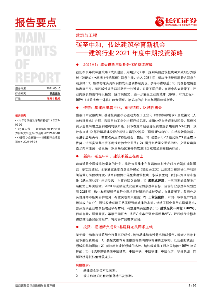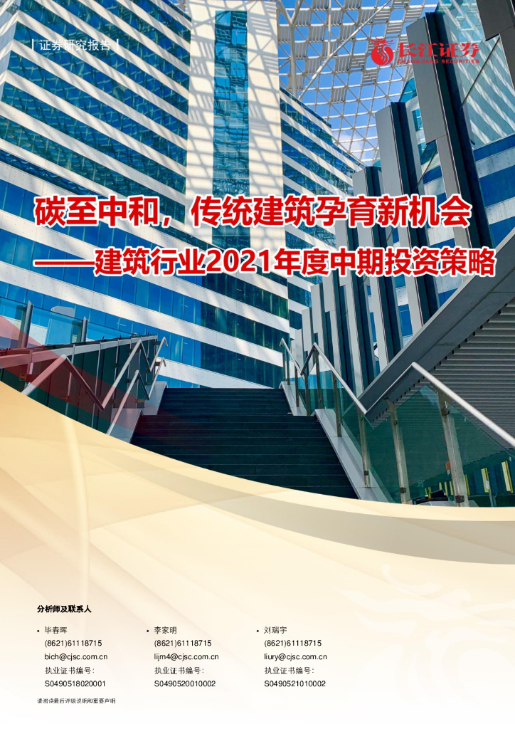 长江证券:碳至中和,传统建筑孕育新机会—建筑行业2021年度中期投资策略.pdf