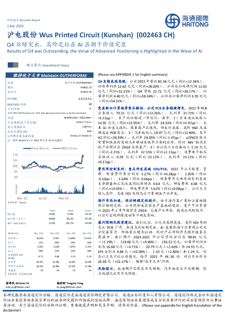 海通国际:沪电股份(002463)-Q4业绩突出,高阶定位在AI浪潮下价值突显.pdf