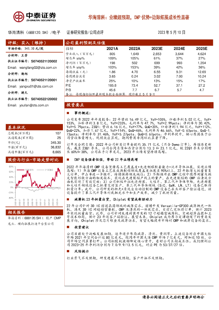 中泰证券:华海清科:业绩超预期,CMP优势+边际拓展成长性显著.pdf