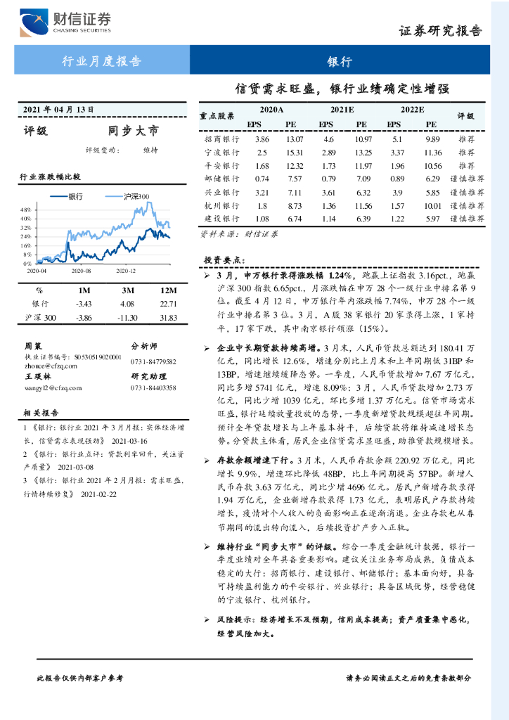 财信证券:银行行业月度报告:信贷需求旺盛,银行业绩确定性增强.pdf