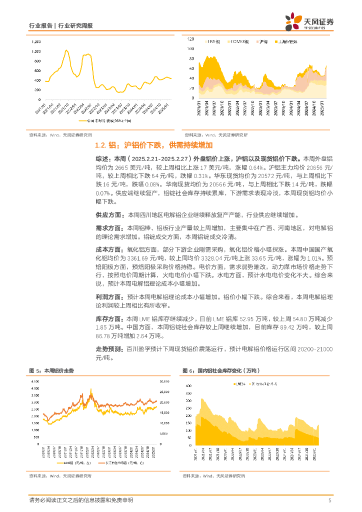 天风证券:金属与材料行业研究周报:电解铝淡季表现强韧,看好向旺季转换.pdf