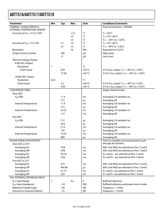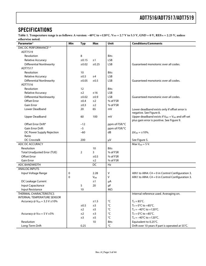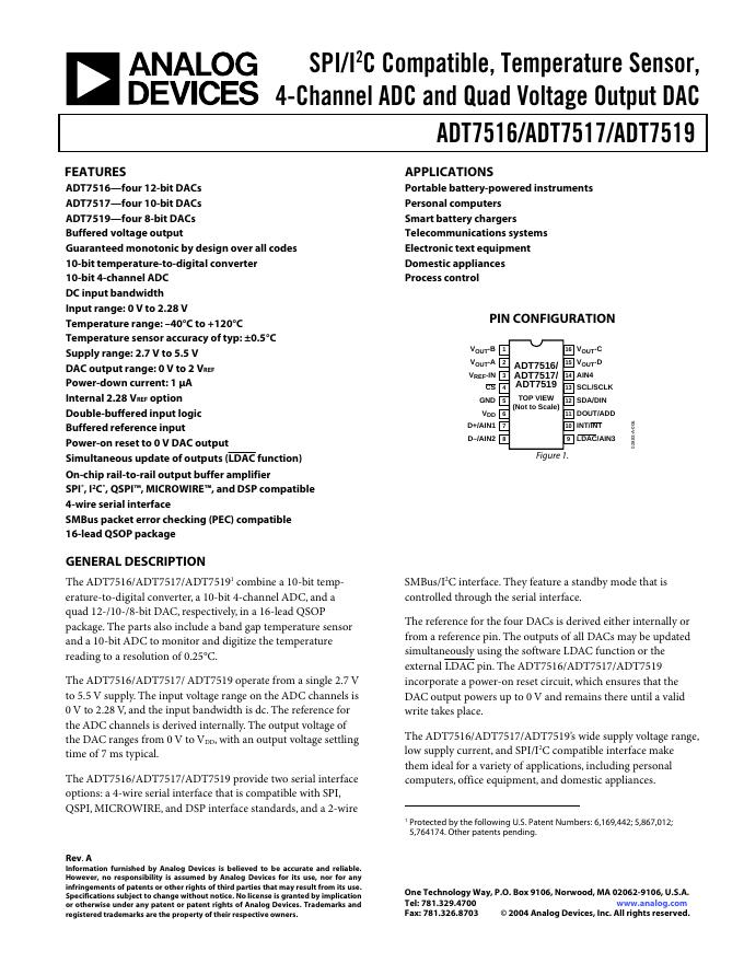 ANALOG DEVICES - SPI/I2C Compatible, Temperature Sensor, 4-Channel ADC and Quad Voltage Output DAC ADT7516/ADT7517 数据手册.pdf